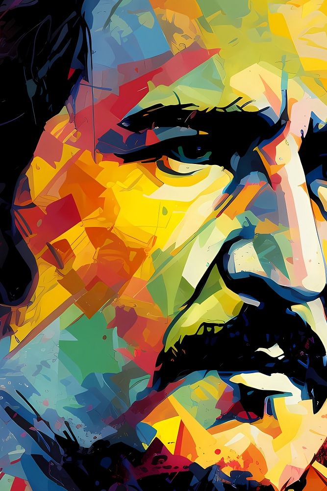 Cette œuvre d'art moderne, avec ses couleurs vibrantes et ses coups de pinceau puissants, apporte une énergie dynamique à n'importe quel espace. L'expression abstraite donne au spectateur un sentiment de passion et de mouvement, comme si les émotions du portrait lui-même éclaboussaient la toile. Cette œuvre est un excellent moyen d'engager la conversation et constitue un point focal puissant dans un salon ou crée une atmosphère inspirante dans un environnement de travail créatif. Chaque moment d'observation révèle de nouvelles couches et textures, créant une impression durable et une appréciation profonde de la complexité de l'œuvre.