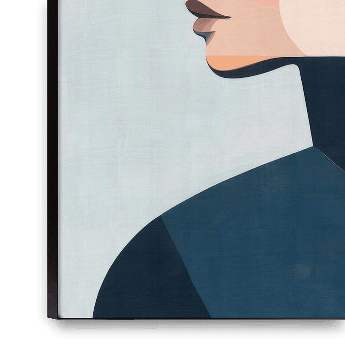 L'image montre le profil stylisé d'une personne, caractérisé par des formes géométriques aux couleurs douces. La composition divise la tête en zones harmonieuses et arrondies qui contrastent avec des tons plus sombres et de subtiles nuances de peau. Cette représentation picturale crée un équilibre fascinant entre modernité et…