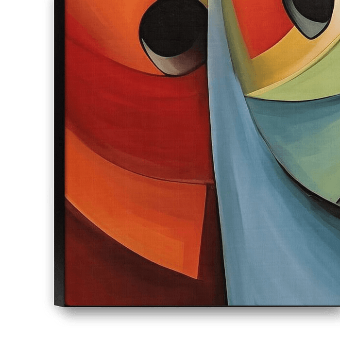 La combinaison de contrastes profonds et d'accents vifs confère au tableau un aspect moderne et saisissant. Les couleurs soigneusement assorties renforcent les émotions cachées dans les visages et créent un ensemble visuellement puissant qui attire immédiatement l'attention.