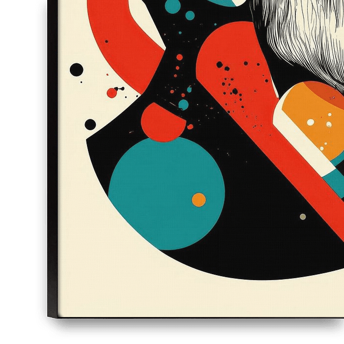 Portrait stylisé d'un intellect intemporel, cette œuvre d'art capture le regard réfléchi d'un visionnaire âgé, perdu dans une tempête de formes abstraites et de couleurs rétro. Avec des éléments de futurisme et de nostalgie, elle représente l'équilibre entre la réflexion et l'anticipation, faisant écho à un esprit de sagesse entouré de…