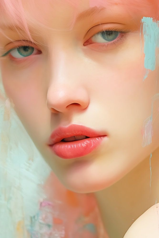 Portrait abstrait d'une femme, dans des couleurs rose et jaune.