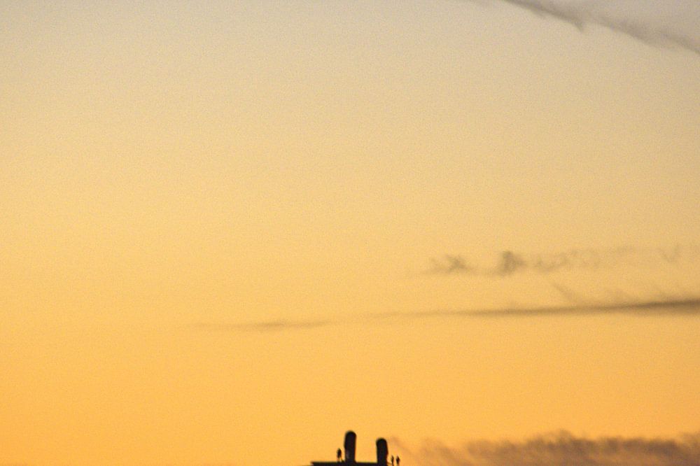 Des gens sur le terril de Rungenberg à Gelsenkirchen devant les deux canons légers au crépuscule