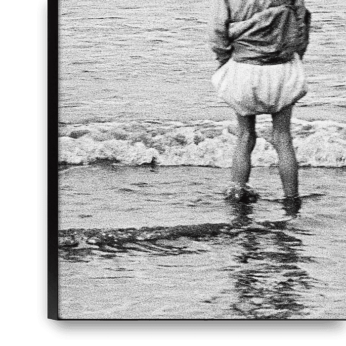 Comme elle est mignonne, cette petite fille, les pieds dans la mer. Est-ce qu'elle regarde ce magnifique voilier au loin ? Elle a une mère pratique. Comment garder une robe comme ça au sec le plus longtemps ? Il suffit de le fourrer dans le pantalon ! Cette photo a été prise avec un amour et un savoir-faire extraordinaires (Collection…