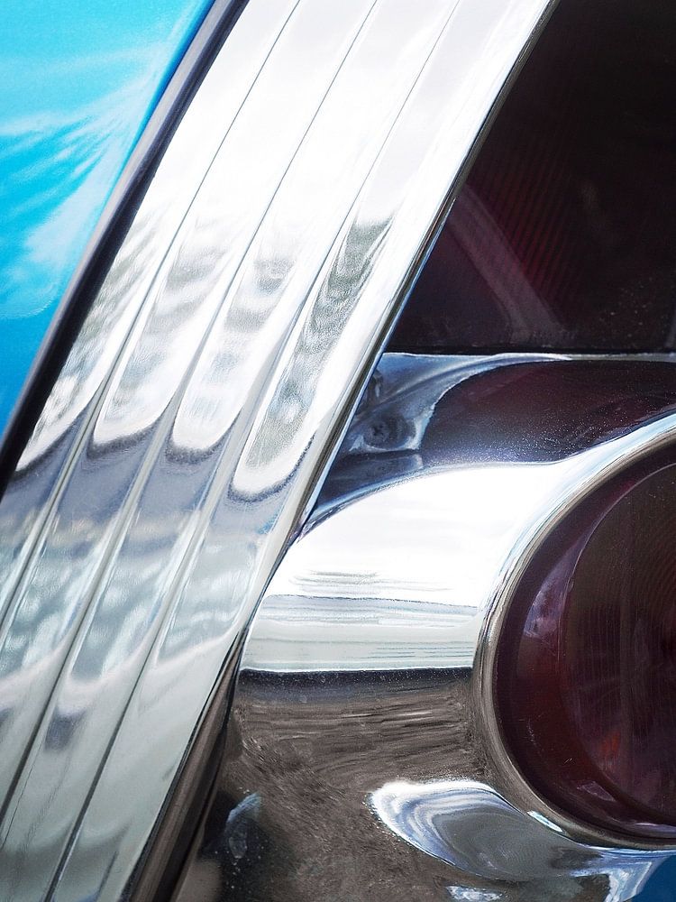 La photo vous montre l'arrière d'une légendaire voiture américaine de collection de 1957. L'accent est mis sur quelques détails de cette fantastique automobile. L'accent est mis sur l'interaction entre les lignes, les couleurs et les surfaces.