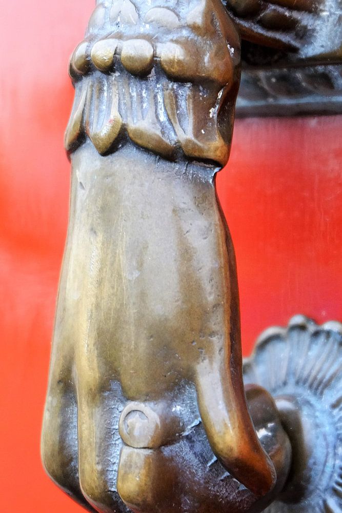 Voordeur in rood met hand-klopper. par Marian Klerx