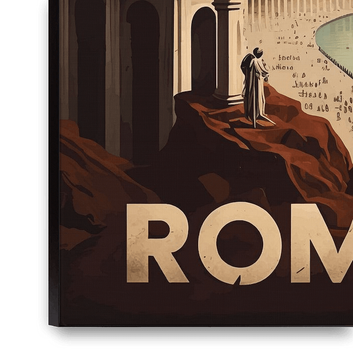 Embarquez pour une aventure inoubliable dans la Ville éternelle. Ce poster capture l'essence de Rome, vous invitant à explorer ses sites historiques, à savourer sa délicieuse cuisine et à faire l'expérience de sa culture vibrante.