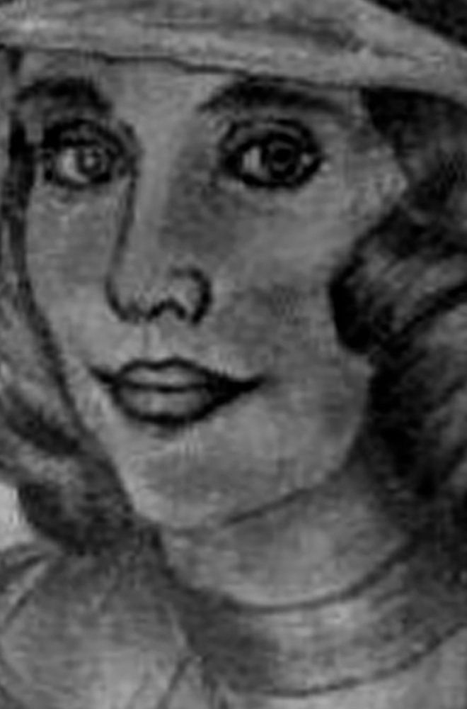 Potlood tekening van een vrouw van de jaren 70 met hoed