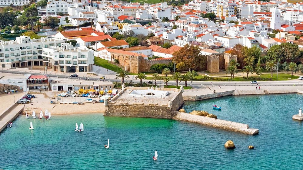Vue aérienne de la ville de Lagos dans la région de l'Algarve au Portugal