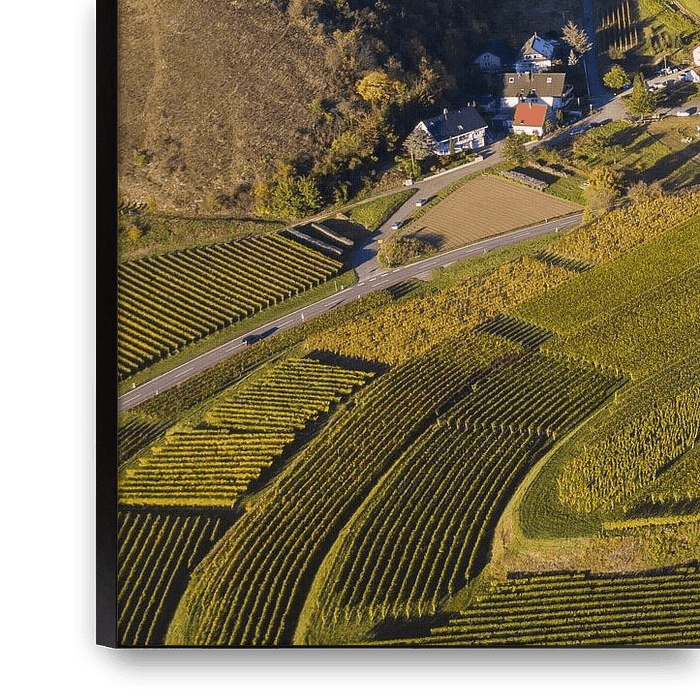 Achetez cette œuvre d'art de paysage Vue aérienne des vignobles à Vogtsburg im Kaiserstuhl par Werner Dieterich sur toile, aluminium, ArtFrame ou photographie (encadrée), impression d'art en haute qualité et tout format.