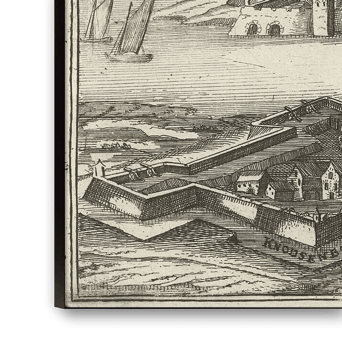 Achetez Vue de Nimègue et du fort Knodsenburg, Gaspar Bouttats en tant que reproduction sur toile, aluminium, ArtFrame ou photographie (encadrée), impression d'art en haute qualité et tout format