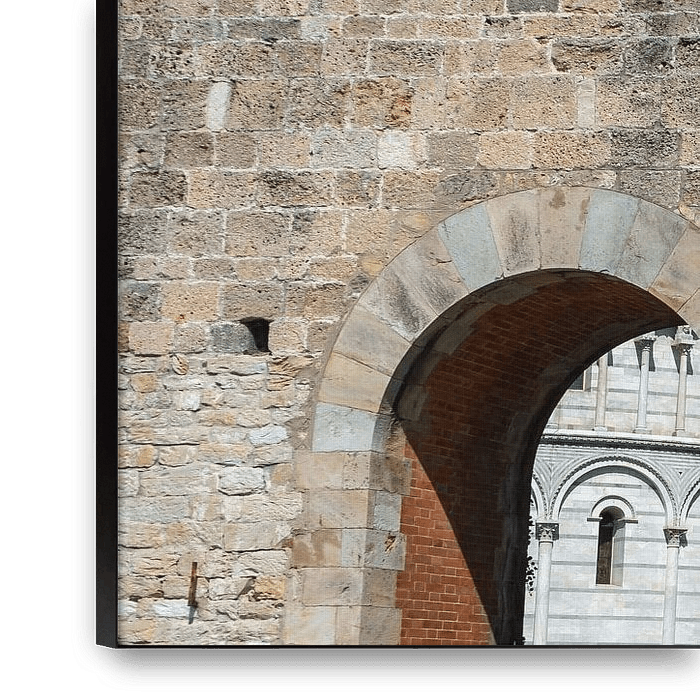 Vue de la Tour Penchée de Pise depuis la porte de la ville