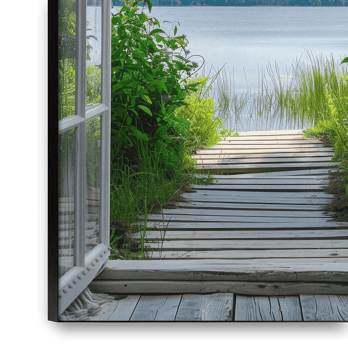 Découvrez le calme et la sérénité d'un lac paisible, vu à travers une fenêtre ouverte. Ce poster apporte l'atmosphère apaisante et rafraîchissante de la nature dans votre salon. Idéal pour les amoureux de la nature et tous ceux qui souhaitent créer un environnement relaxant et paisible. Les couleurs douces et la représentation détaillée…