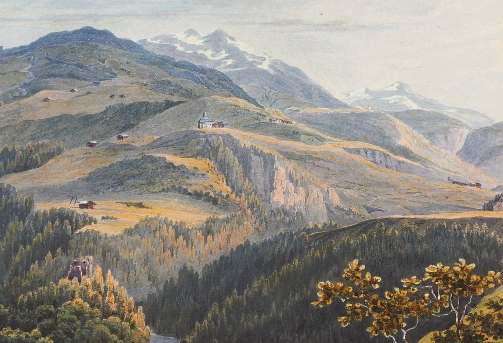 Vue de la réunion des deux bras du Rhin supérieur et du Rhin du milieu prise près le couvent de Dissentis, Johann Ludwig Bleuler Johann Ludwig Bleuler, parfois appelé Louis, était un peintre, paysagiste et éditeur suisse.