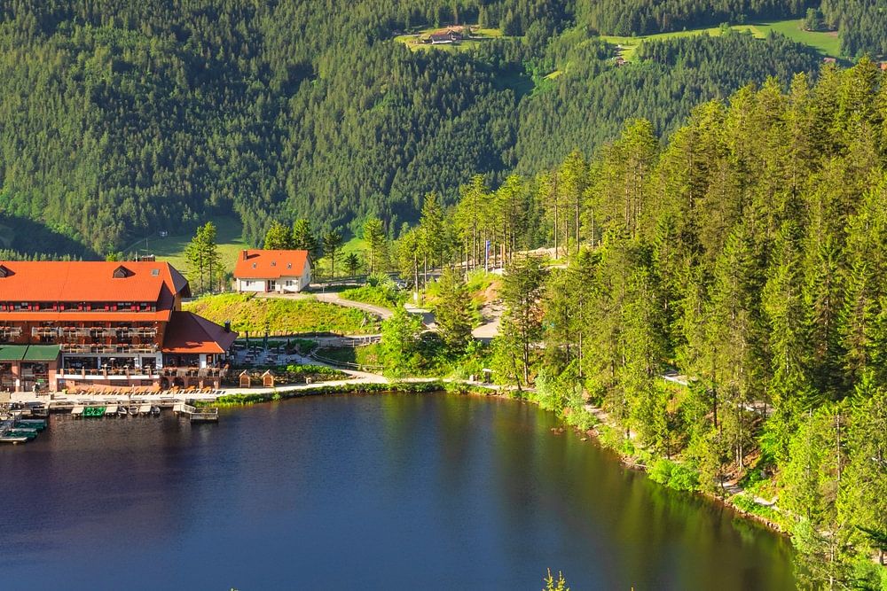 Vue du Hornisgrinde vers le lac Mummelsee, Forêt-Noire, Allemagne