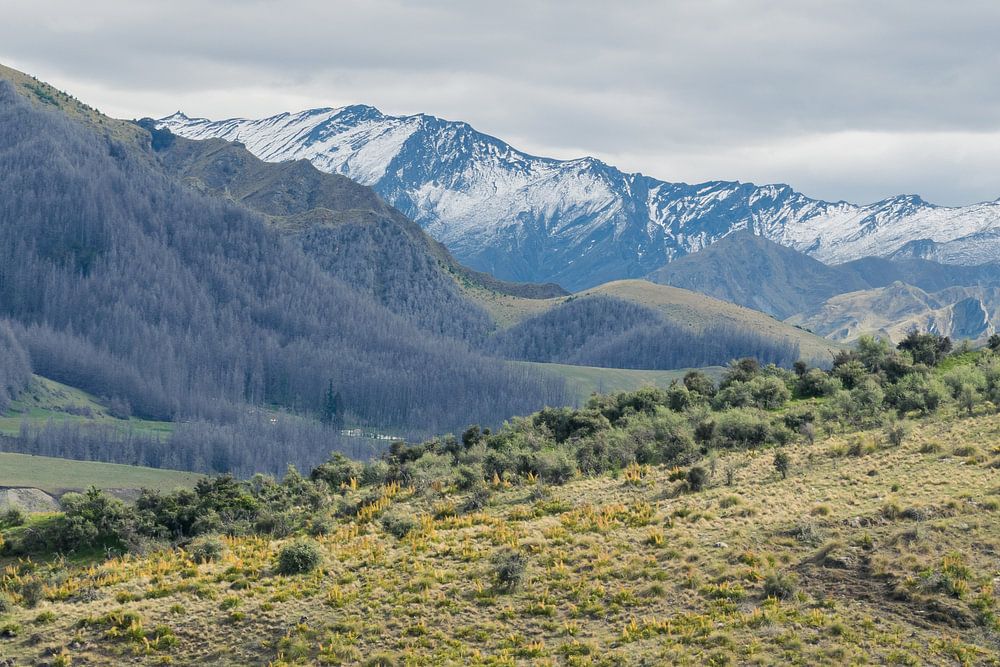 Voici une vue que vous avez de la route la plus dangereuse de Nouvelle-Zélande : Skippers Canyon Road. Les montagnes sont magnifiques !