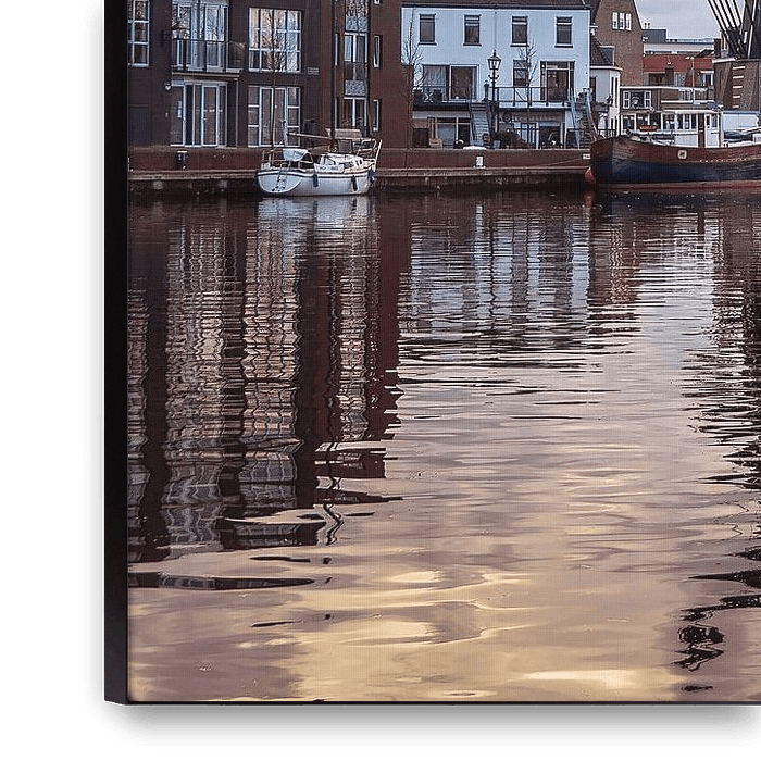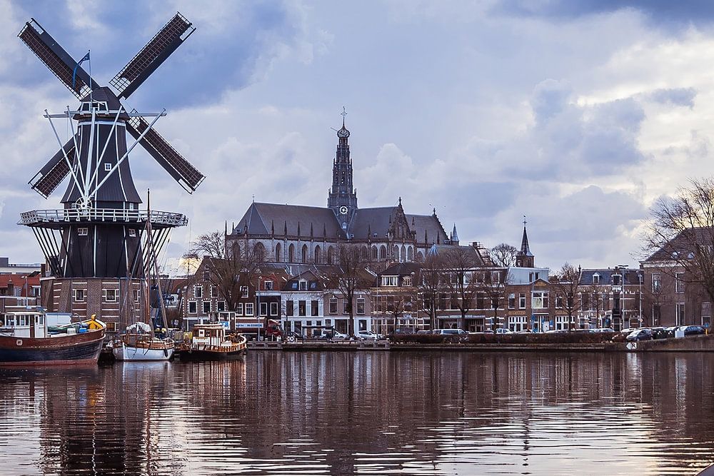 Un véritable record de Haarlem avec un paysage urbain célèbre. Le classique de la Grande Église, le Moulin Adriaan et le Spaarne avec les maisons modernes à quai sur la gauche. C'est le dossier dont vous avez besoin de Haarlem.