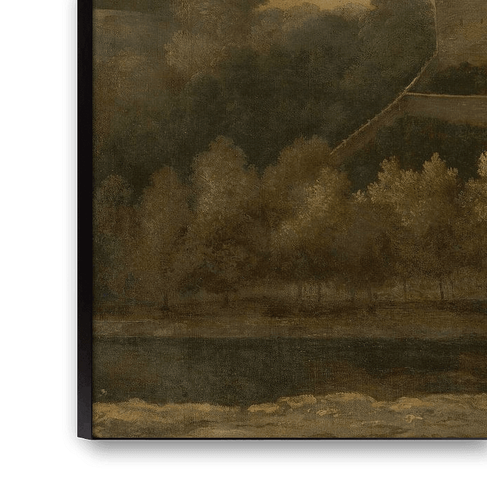 Van Everdingen s'est rendu en Scandinavie, où il a peint des paysages nordiques avec des chutes d'eau sauvages. Mais il travaillait aussi plus près de chez lui. Ce tableau montre Montjardin, un château près de la ville de Liège. Il se dresse sur un rocher escarpé, dominant la rivière au premier plan.