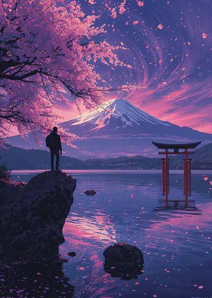 Sérénité au coucher du soleil : une vue de rêve sur le mont Fuji