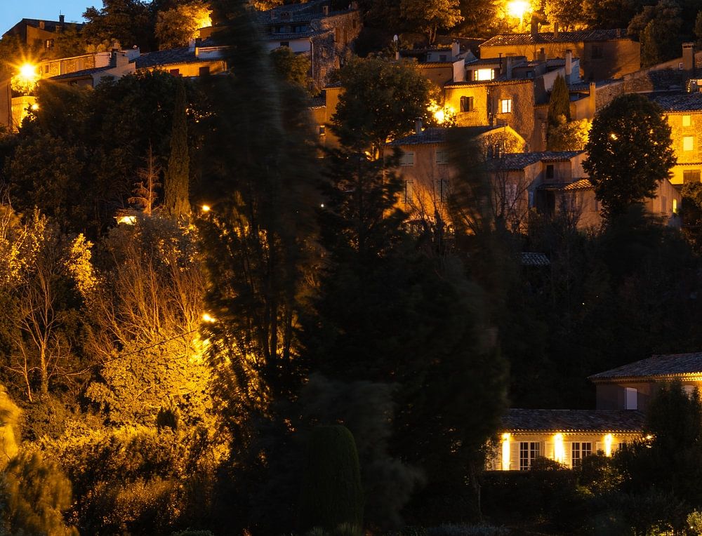 L'un des nombreux villages de montagne de Provence, en France. Le nom du village laisse deviner sa beauté, surtout le soir lorsque les bâtiments sont magnifiquement éclairés. L'église se détache magnifiquement au-dessus du village.