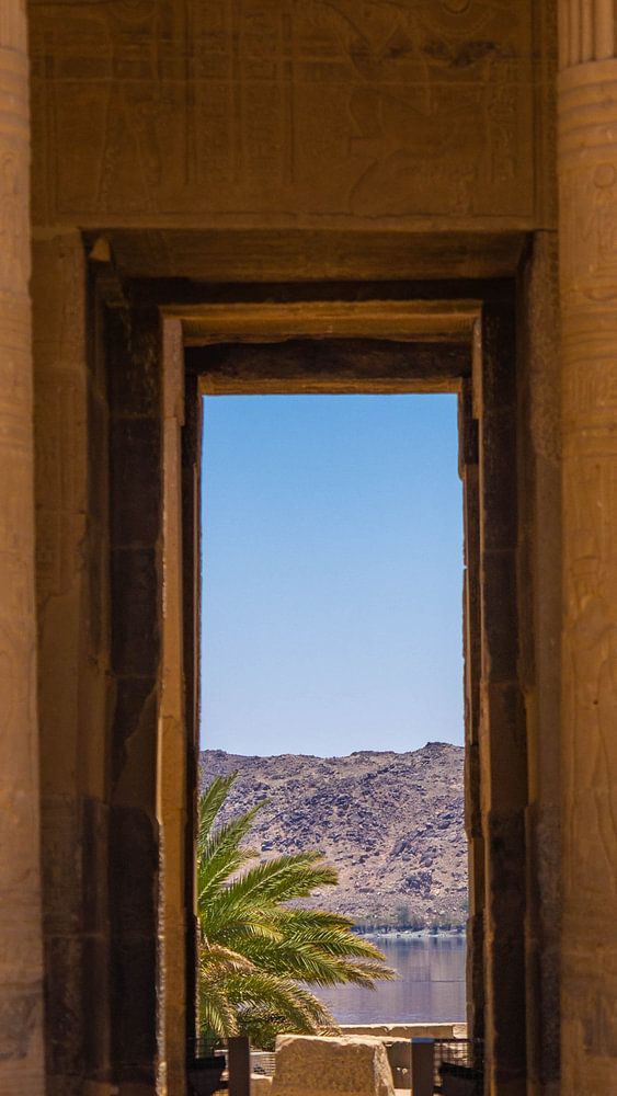 Vue à travers le temple de Philae, trouvé dans le Nil près d'Assouan en Egypte. Le temple est également appelé le temple d'Isis.