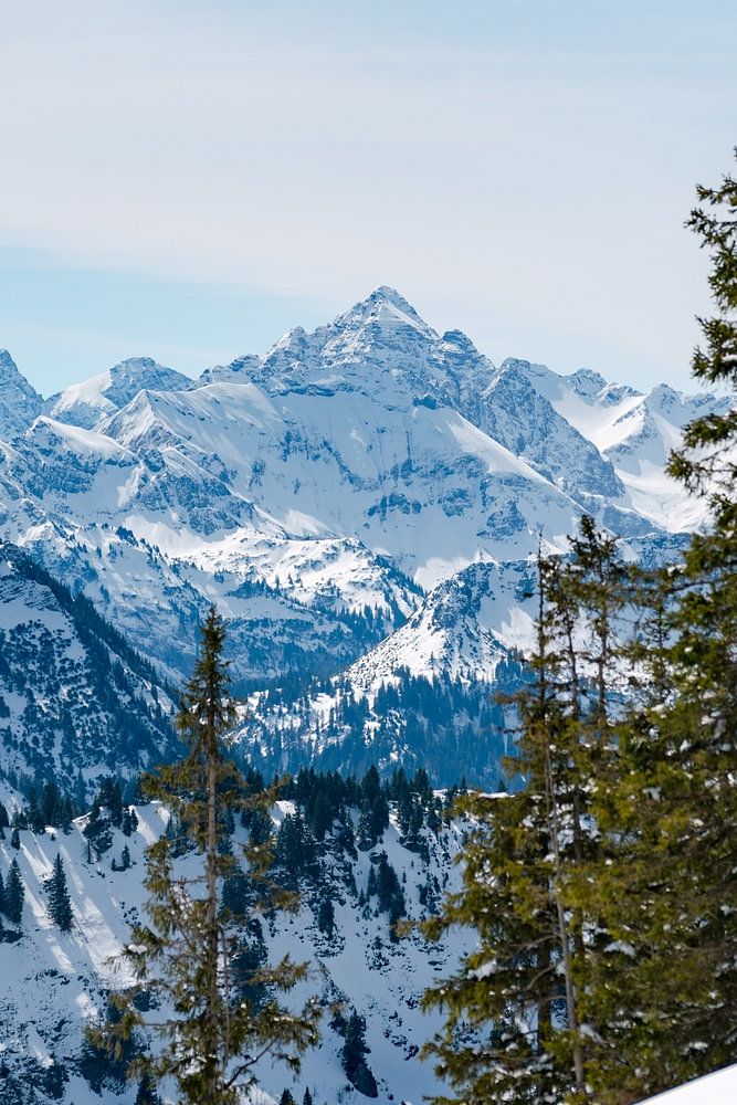 Vue hivernale sur le Hochvogel et les Alpes d'Allgäu
