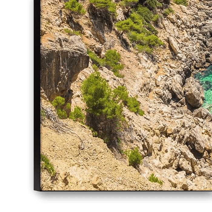 Achetez cette œuvre d'art de paysage Vue panoramique du paysage marin naturel de la côte de Sant Elm à Majorque, mer Méditerranée par Alex Winter sur toile, aluminium, ArtFrame ou photographie (encadrée), impression d'art en haute qualité et tout format.