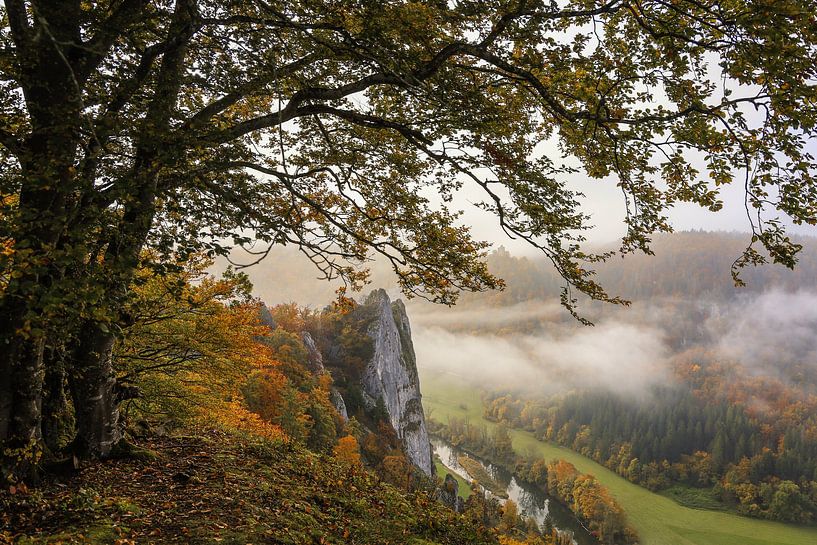 Vue sur la vallée du Danube depuis le point de vue de Burgstall au-dessus de Fridingen, avec les derniers restes de brouillard - Parc naturel du Haut-Danube par BlattArt - Christine Horn