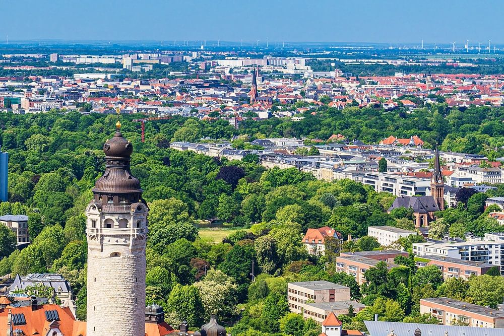 Vue sur la ville de Leipzig avec le nouvel hôtel de ville par Rico Ködder
