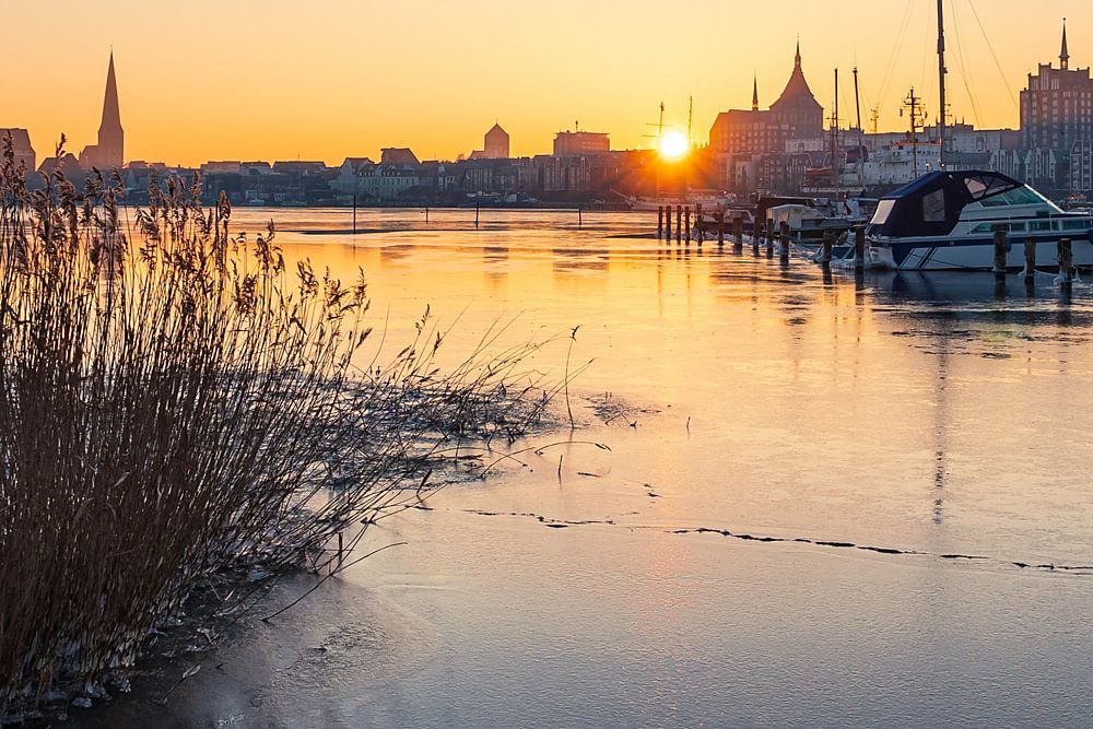 Achetez cette photo Vue sur le Warnow à Rostock en hiver par Rico Ködder sur toile, aluminium, ArtFrame ou photographie (encadrée), impression d'art en haute qualité et tout format.