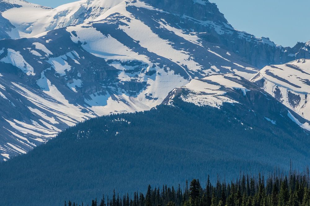 Si proche et pourtant si loin. Les magnifiques sommets enneigés vus depuis le lac Maligne.