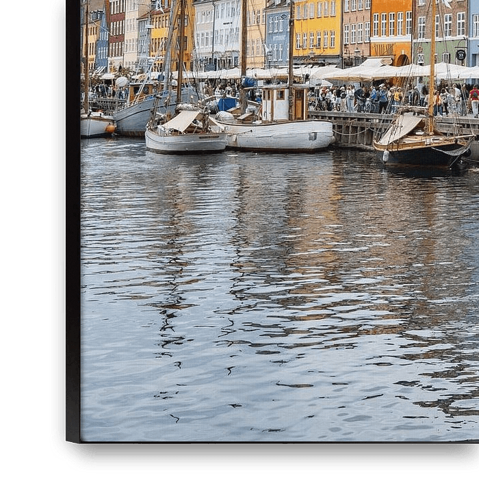 Quelle belle image, le port de Copenhague avec ses façades colorées, ses vieux bateaux de pêche et son magnifique ciel nuageux.