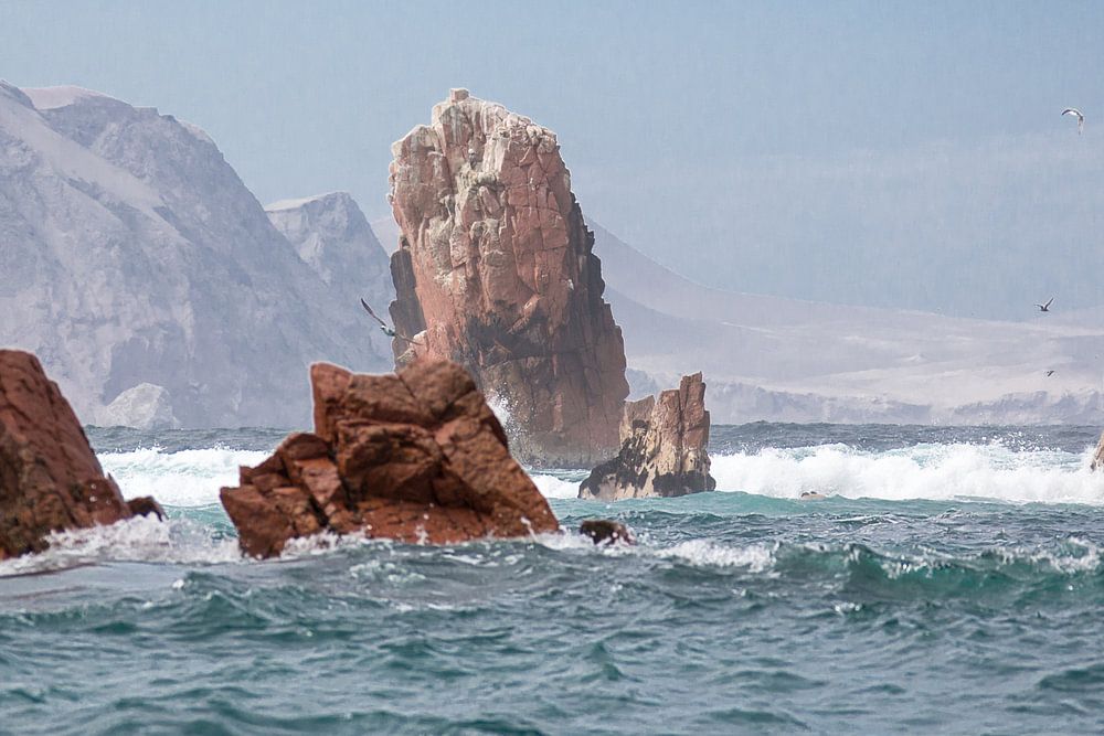 Rotspartij in de zee bij de Ballestas eilanden te Peru
