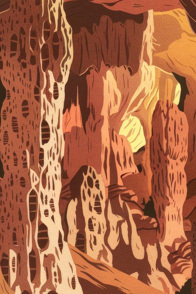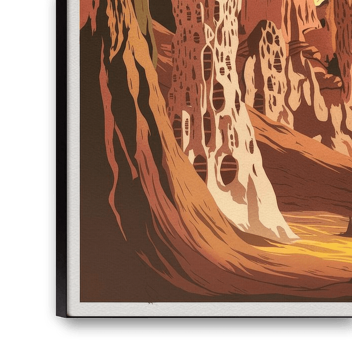 Des jeux de lumière mystiques dansent sur les impressionnantes formations calcaires de cette grotte fascinante. Les tons chauds de la terre et l'atmosphère mystérieuse invitent à explorer les profondeurs de la nature. Parfait pour le salon, il confère à chaque pièce un sentiment d'aventure et de tranquillité. Un accroche-regard qui raconte des histoires de découvertes passionnantes !