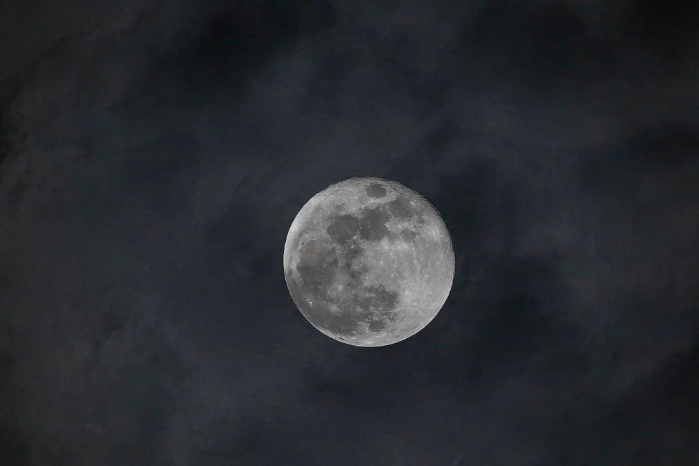 Nach langem Warten bildete sich eine Lücke in der Wolkendecke und der Vollmond war sichtbar.