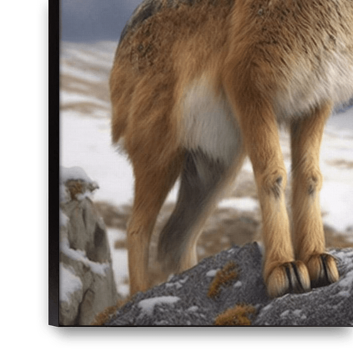 Cette image captivante montre une créature mythique trônant avec assurance sur un rocher alpin enneigé. Connu dans le folklore bavarois sous le nom de Wolpertinger, cet animal fantastique est un hybride légendaire, souvent présenté comme un mélange de différentes espèces réelles. La créature ici ressemble à un lièvre avec le corps et le…