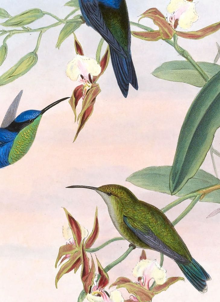 Wood-Nymph Veraguay (Thalurania Venusta), John Gould La découverte de cette nouvelle espèce par le célèbre voyageur Warszewicz près du volcan de Chiriqui à Veragua est d'un double intérêt; Premièrement, en ajoutant une espèce supplémentaire au genre bien défini, la thaluranie et, deuxièmement, comme la preuve supplémentaire prouve encore que la plupart des formes à un moment donné sont particulières au continent d'Amérique du Sud proprement dite, ont leurs représentants dans les pays Allongé au nord à l'isthme du Panama, généralement connu sous le nom d'Amérique centrale. Cette illustration a été restaurée à son dynamisme d'origine en améliorant les couleurs et en supprimant les marques indésirables. Une monographie des trochilidæ, ou famille de birds de colibris, a été publiée entre 1849 et 1887 par l'ornithologiste anglais John Gould. Ce travail monumental dépeint et décrit toutes les espèces connues de colibris à l'époque - comprenant 418 plaques lithographiques et des informations sur 537 espèces. "