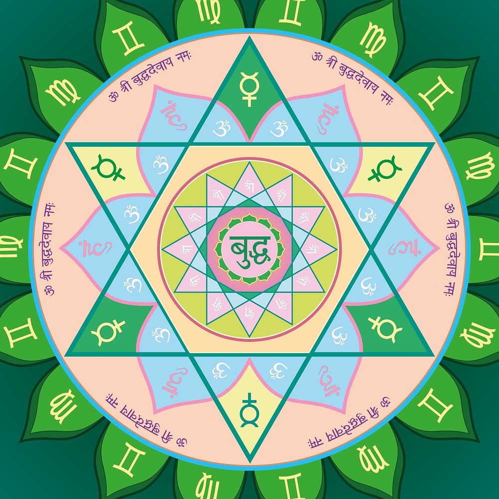Yantra de Mercure. Mantras de la planète Mercure pour la méditation et la visualisation. Astrologie de l'hindouisme. Pour améliorer le karma et éliminer les limitations dans la vie
