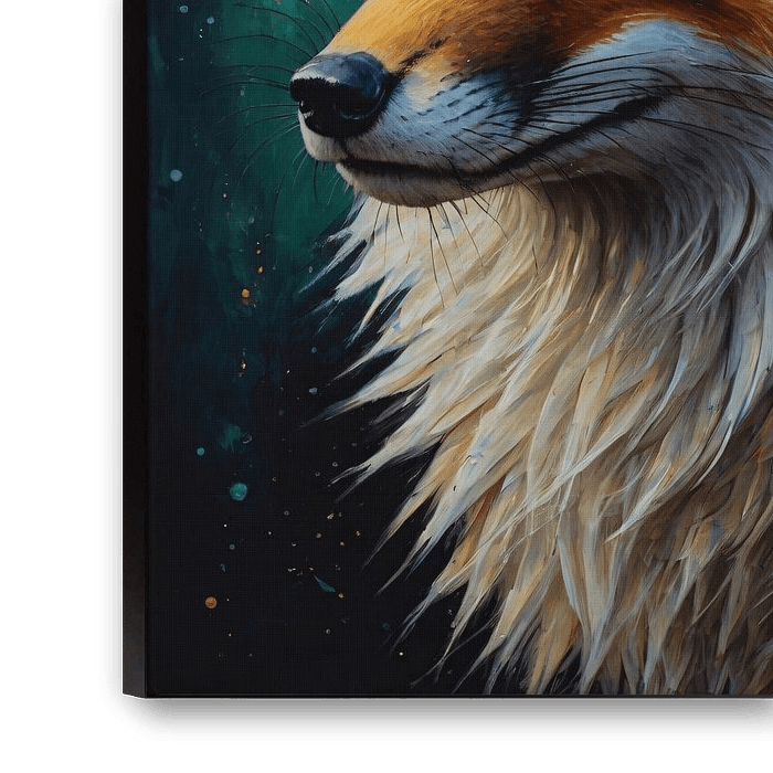 Cette œuvre d'art vibrante fascine les spectateurs par sa représentation réaliste d'un renard. Les magnifiques coups de pinceau donnent vie à chaque poil du corps du renard avec une riche palette de couleurs qui éclaboussent la toile. Les teintes orange, jaunes et blanches s'entremêlent pour créer une texture chaude et accueillante, tandis que les yeux perçants du renard semblent être une fenêtre sur une nature sauvage inconnue. Cette œuvre apportera un sentiment de beauté naturelle et de curiosité à n'importe quel espace, parfait pour un salon ou un bureau qui a besoin d'une touche d'élégance sauvage. L'arrière-plan, dans des tons subtils de bleu et de vert, offre une contrepartie calme au regard intense du renard, créant un équilibre dynamique mais harmonieux au design.