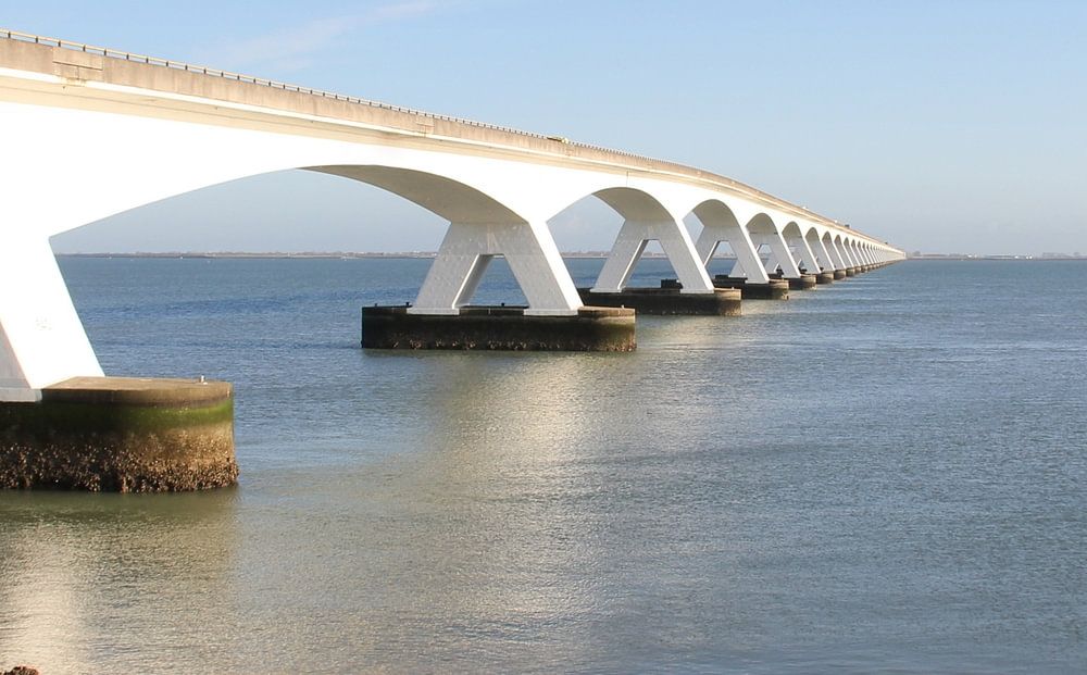 Le pont de Zélande (1965, initialement Oosterscheldebrug) est un pont routier sur l'Escaut oriental d'une longueur totale de 5022 mètres. Elle relie Noord-Beveland et Schouwen-Duiveland, offrant ainsi une liaison plus courte vers les villes de Middelburg et Goes au sud, et Zierikzee et Bruinisse au nord. Le pont fait partie de la route provinciale N256. source wikipedia.