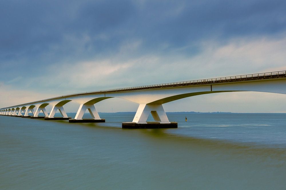 Cette photo du pont de Zélande a été prise du côté de Colijnsplaat. En arrière-plan à gauche, vous pouvez voir la silhouette de Zierikzee. J'ai pris cette photo avec une vitesse d'obturation de 8 secondes, pour obtenir une eau plate et de jolis nuages.