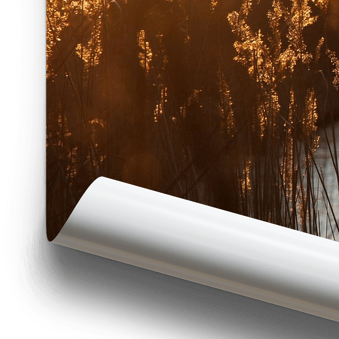 Net voordat het te donker zou worden om nog verder te lopen, zag een warme gouden gloed gecreëerd door de ondergaande zon die door het riet scheen.