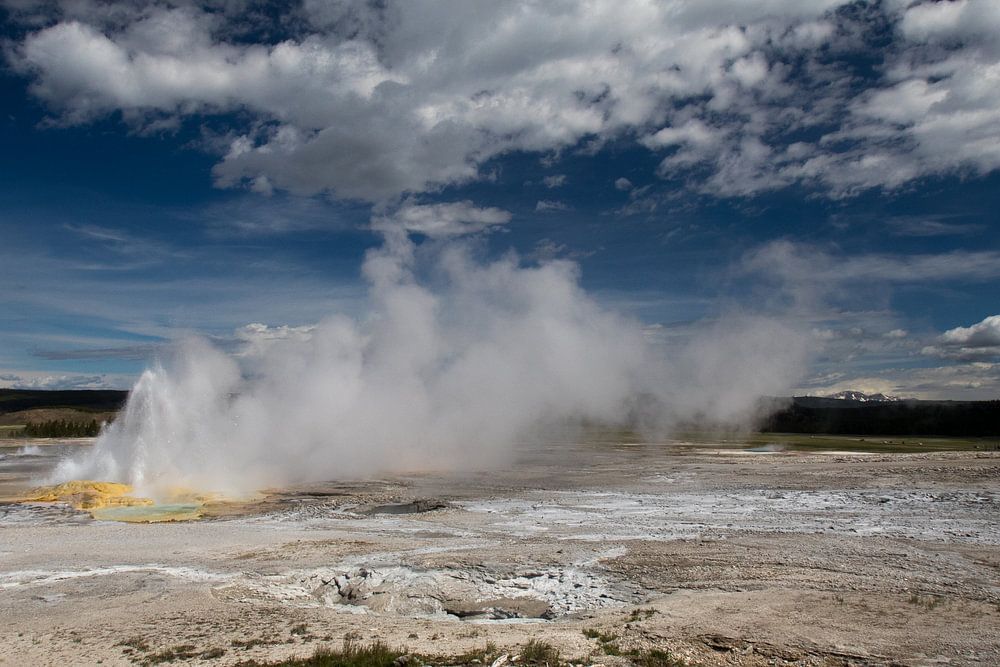 Pruttelende zwavelbron in Yellowstone National Park USA. Prachtig en fascinerend natuurverschijnsel in Yellowstone. Surrealistisch beeld.