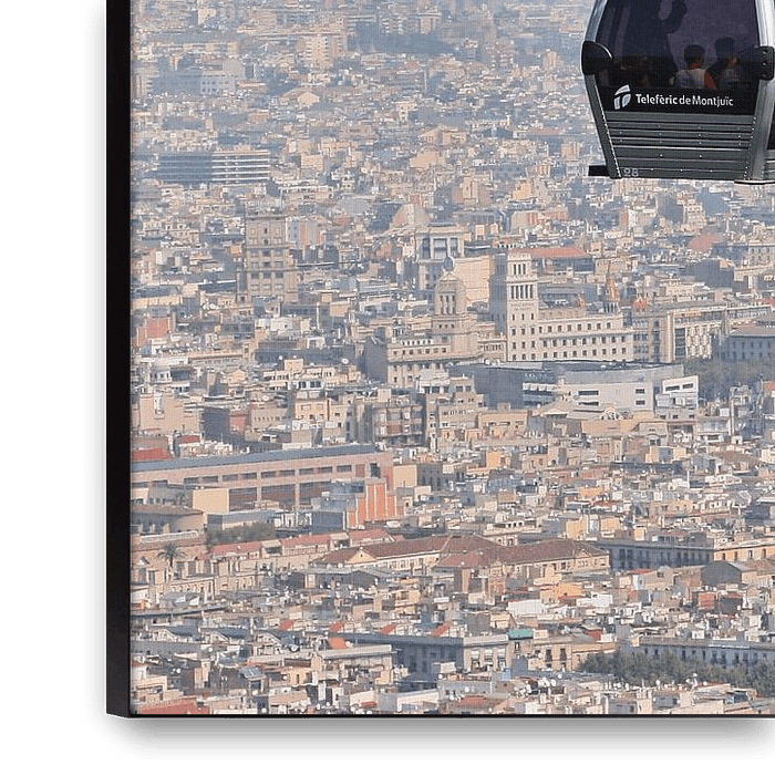 Au-dessus des toits de la charmante ville - Teleferic de Montjuic, Barcelone, Espagne.