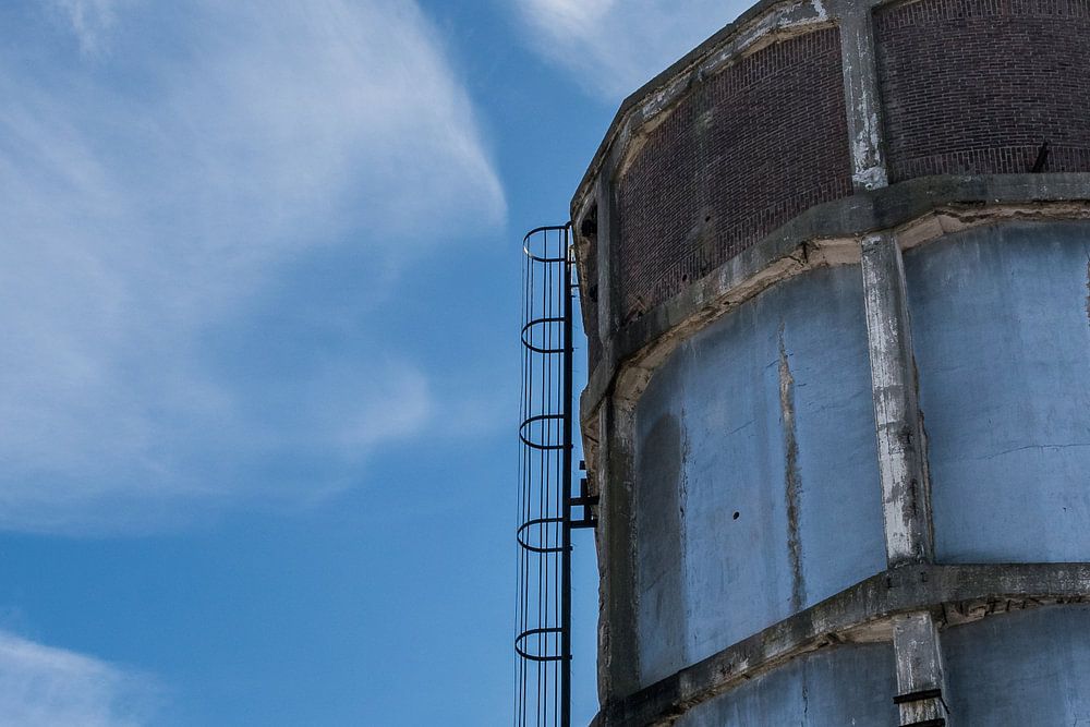 Jolie photo d'un vieux château d'eau industriel, ici par une très belle journée d'été avec un ciel bleu serré qui le rend encore plus beau.