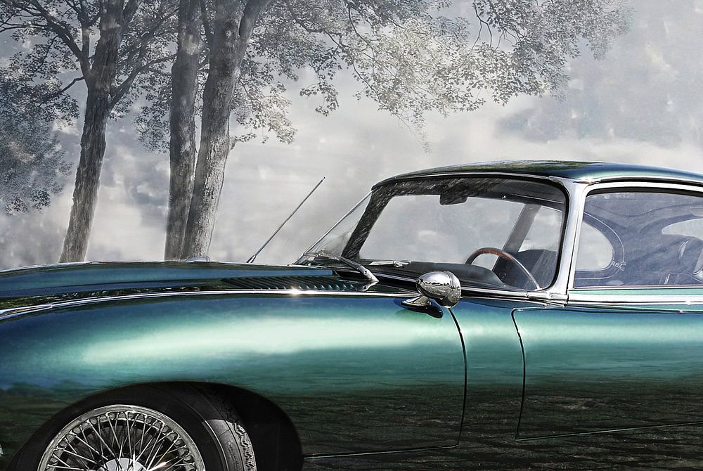 britische Symbole, der legendäre E-Type und eine unverkennbare rote Telefonzelle