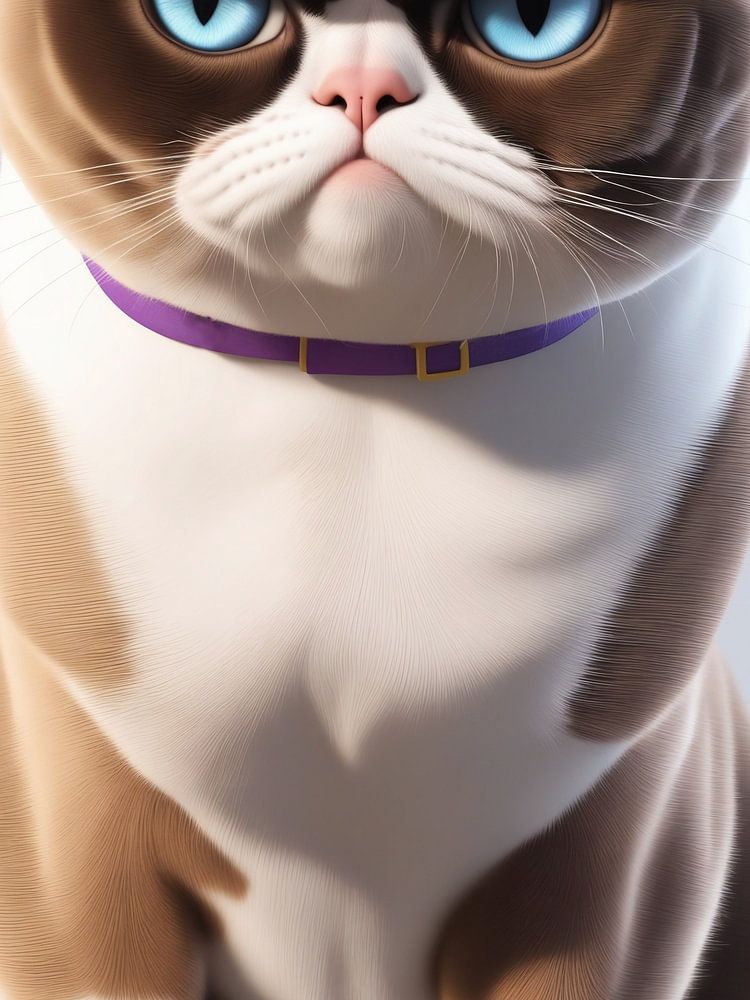 Image d'un chat brun et blanc grincheux aux yeux bleus