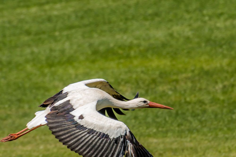 cigogne près de la prairie volante herbe en arrière-plan beauté de la nature en gros plan