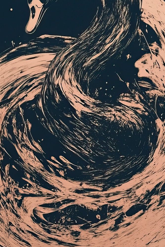Cette œuvre d'art expressionniste présente un design élégant et minimaliste qui s'intégrerait parfaitement dans un intérieur moderne, bohème ou branché. Des coups de pinceau roses et dynamiques s'écoulent dans le cou et la tête d'un cygne. La peinture rose sur un fond sombre rend l'œuvre audacieuse et pleine de passion.