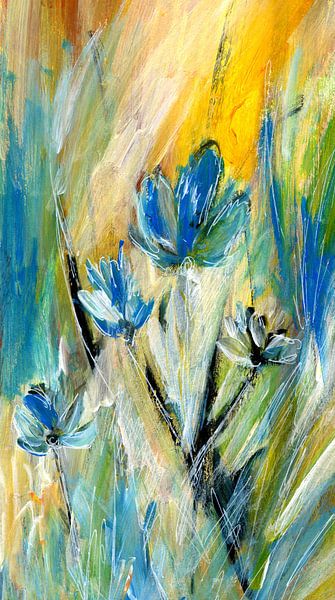 Une peinture de fleurs colorée et expressive pour le salon avec des éléments graphiques. Il rayonne d'optimisme et de gaieté. La beauté de la nature offre toujours des sources d'inspiration…