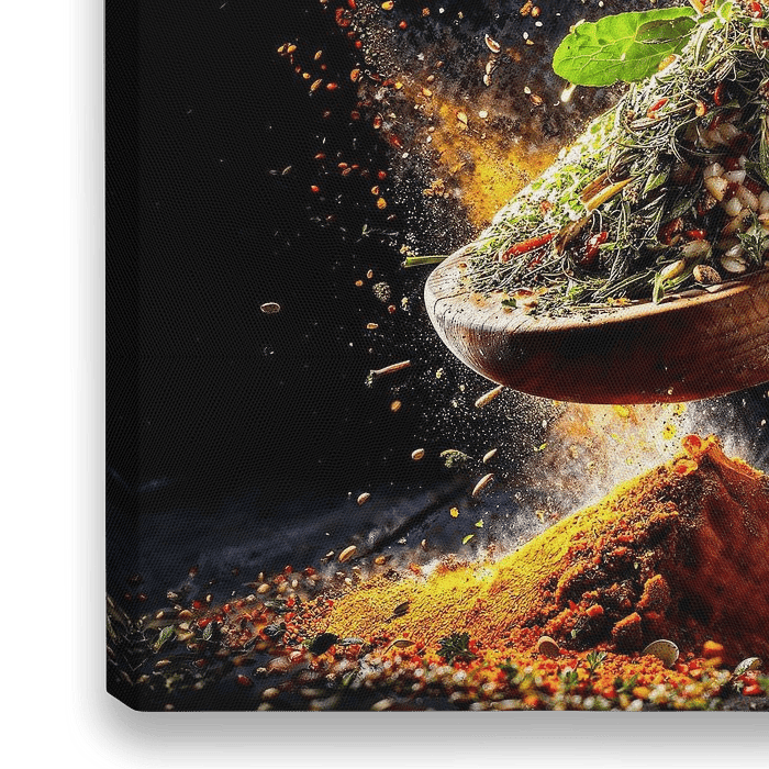 Une explosion de saveurs sur une cuillère en bois. cette image a été créée à l'aide de ai et photoshop. une assiette colorée pour la cuisine ou un lieu où l'on consomme des repas.